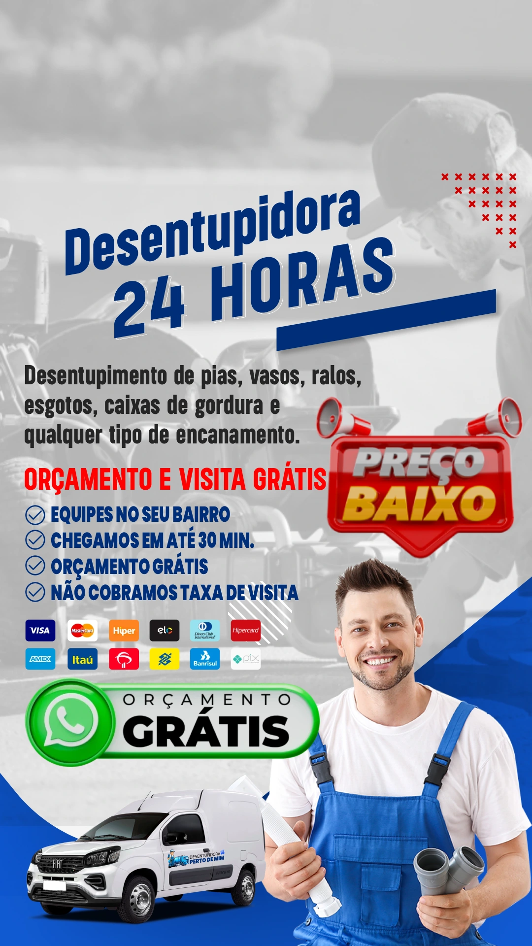 Nossa equipe é altamente capacitada e utiliza equipamentos modernos para lidar com todo tipo de entupimento — dos mais simples aos mais complexos. Atendemos 24 horas por dia, 7 dias por semana, incluindo sábados, domingos e feriados. Quando o problema aparece, a solução está a um chamado de distância!
